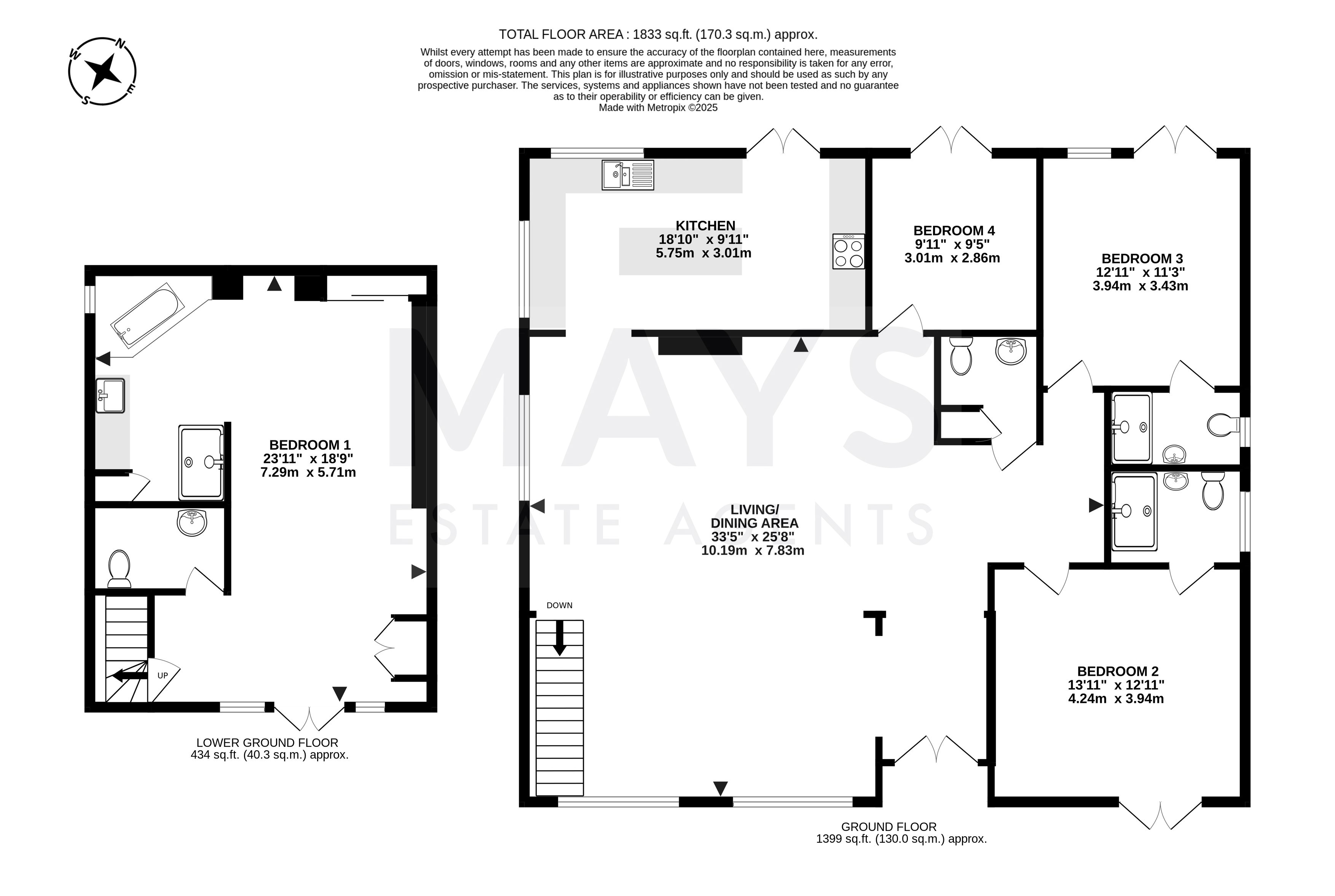 The layout includes a superb ground-floor main bedroom suite offering the ultimate private retreat, or a disconnected office space, with a spacious bedroom, dedicated dressing area and indulgent bathing space. Three further well-proportioned bedrooms, complemented by three stylish bathrooms, ensure comfort and flexibility for family life or hosting guests.