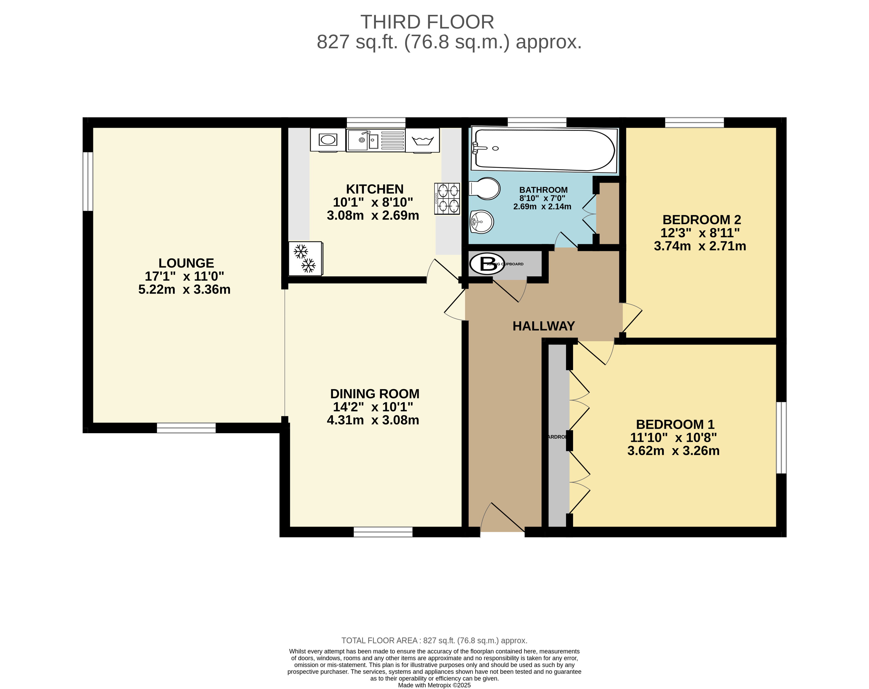 Upon entering the property, you are welcomed by a bright entrance hall featuring a wall-mounted entry telephone and a built-in storage cupboard for added practicality. The accommodation includes a large, airy living room ideal for both relaxing and entertaining, and a modern family bathroom fitted with a sink, toilet, and a bath with a shower overhead. A built-in cupboard houses the boiler, ensuring efficient gas central heating throughout the home. The two double bedrooms are both well-proportioned, providing ample space for beds and furniture, and are perfect for restful, private retreats.