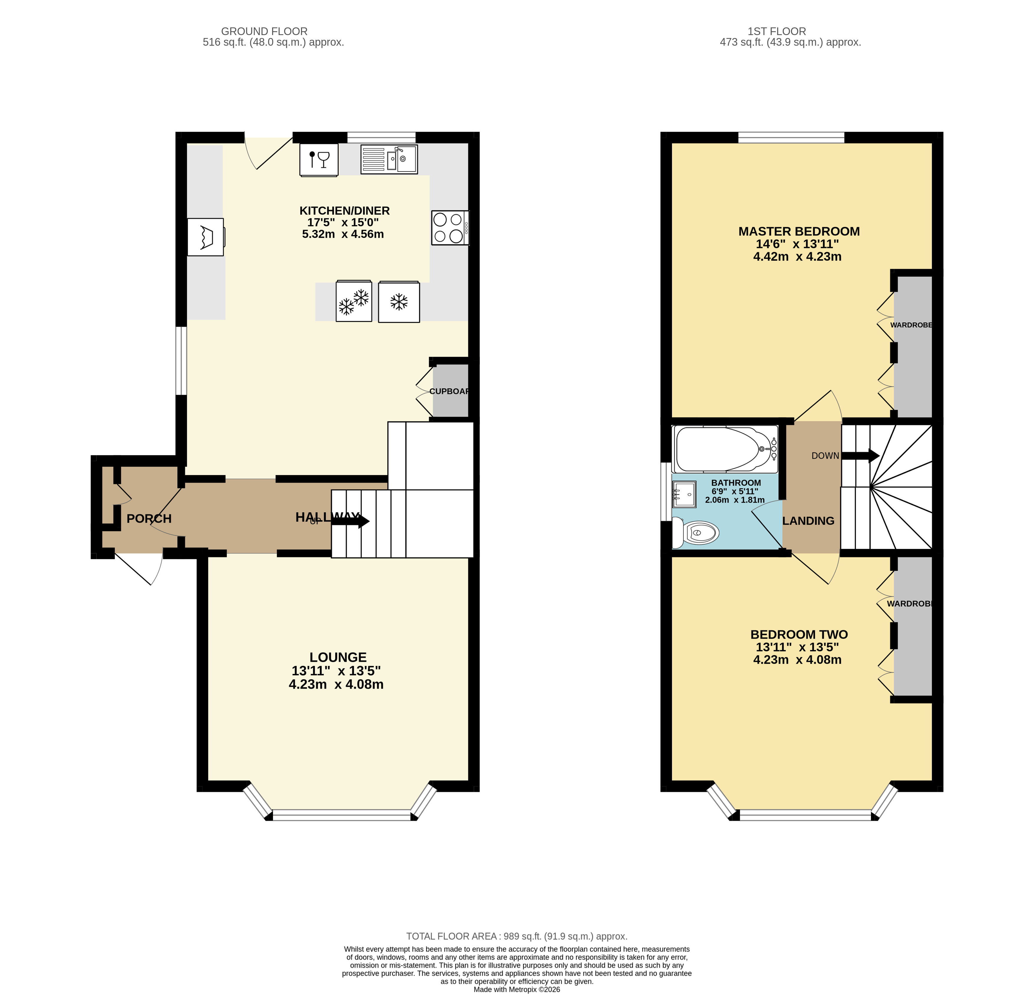Upstairs, the property features two generous double bedrooms, and a modern fitted bathroom complete with bath and shower over, sink, toilet and heated towel rail. Externally, there is off-road parking to the front via a shingle driveway providing space for multiple vehicles, along with additional on-street parking. The property is offered unfurnished.